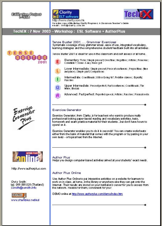 Website : Shambles ESL page www.shambles.net/esl Handout : Word document (412 KB) print on A3 paper Powerpoint : (1,679 KB) .. note that this is the PowerPoint show only and so many of the links do not work ... and it cannot be edited. Most of the live links are on the Shambles ESL page.